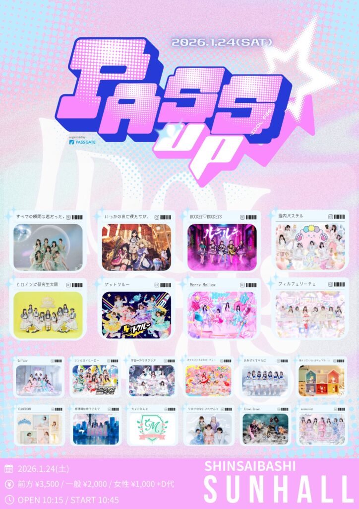 1/24(土)心斎橋SUNHALL〚PASS UP〛