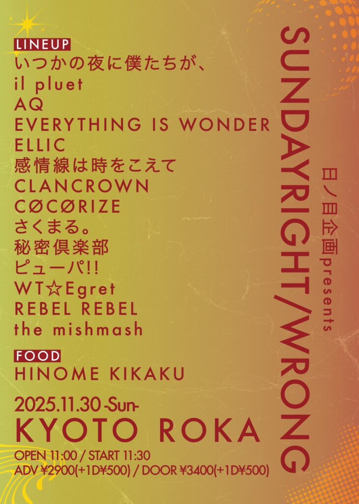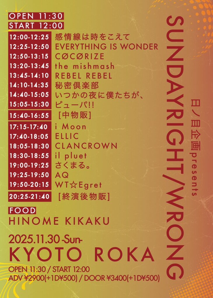 11/30(日)京都ROKA 日ノ目企画presents”SUNDAYRIHGT/WRONG”