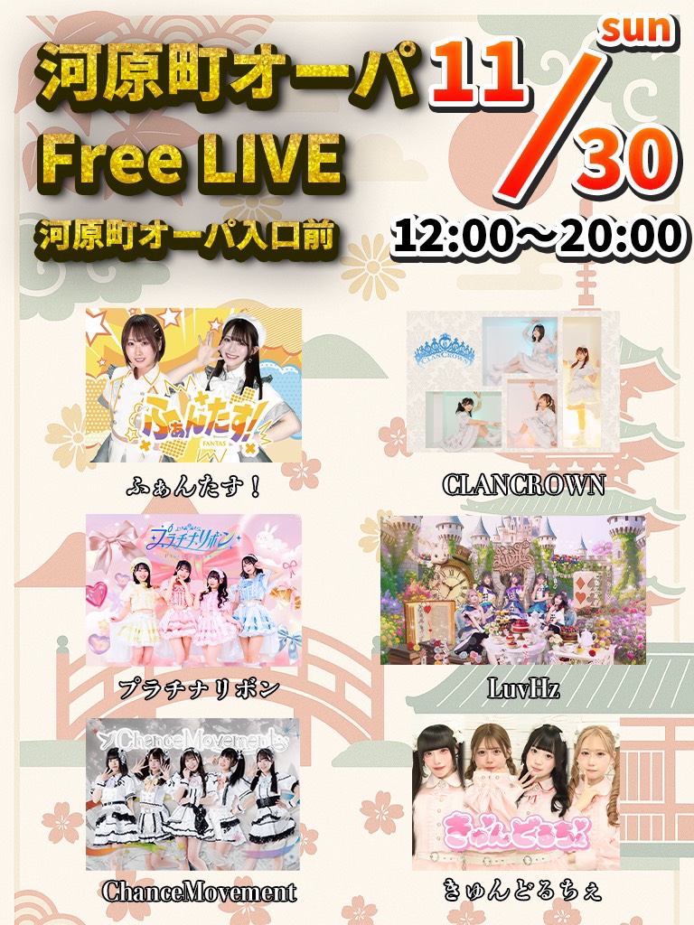 11/30(日)河原町オーパ入口前フリースペース(京都)〚 河原町オーパFree LIVE 〛