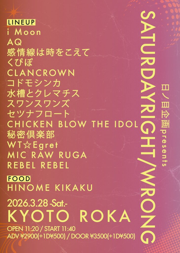 日ノ目企画presents“SATURDAYRIGHT/WRONG”