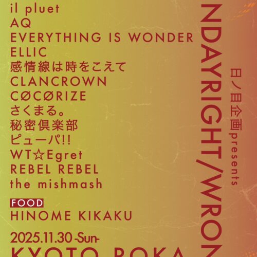 11/30(日)京都ROKA日ノ目企画presents"SUNDAYRIHGT/WRONG"開場11:3…