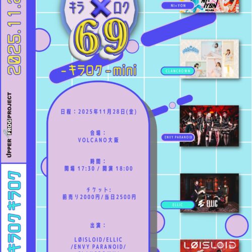 UPPER FROG PROJECT主催〚 kira×69-キラロク-mini 〛11/28(金)湊町VOLCA…