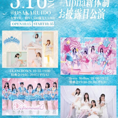 『+Alpha新体制お披露目公演』3/16(月)OSAKARUIDO開場18:15 / 開演18:35優…