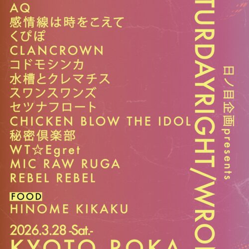 日ノ目企画presents“SATURDAYRIGHT/WRONG"3/28(土)京都ROKA開場11:20…